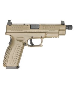 The TP9SDFx also has a match grade barrel, loaded chamber indicator, reversible ambidextrous cocking lever, extended ambidextrous slide stop, and reversible magazine catch with two additional sizes. It includes two magazines, polymer holster with paddle/belt attachment, interchangeable backstraps, cleaning rod, and a brush. This TP9SFx has a sniper grey polymer frame, and a Gray Cerakoted slide with forward slide serrations and lightning cuts.